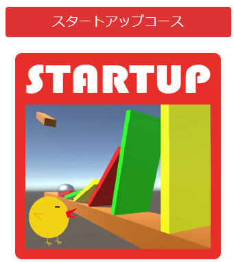 スタートアップコースでは、Unityでゲームを作成する際に必要な用語や操作方法中心に学びます。